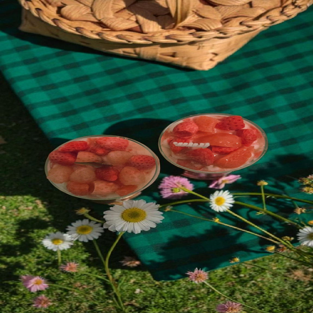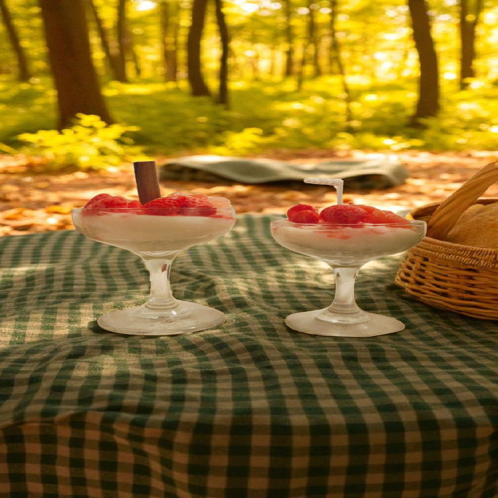 Each parfait-style candle is handcrafted with a creamy cake base, juicy red “berries” on top, and even a little cinnamon stick for that fairytale finishing touch 🕯️🍒